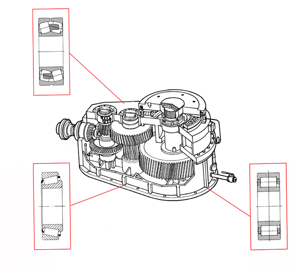 齒輪箱的主要功能是變速,增大轉(zhuǎn)矩,以便輸出大的扭矩。一般不間斷連續(xù)運(yùn)行。要求軸承具有高可靠性、長壽命、低噪音。針對齒輪箱行業(yè)的應(yīng)用特點。TWB選用較高純凈度的軸承鋼。通過提高軸承加工精度等措施開發(fā)出多個系列齒輪箱軸承。